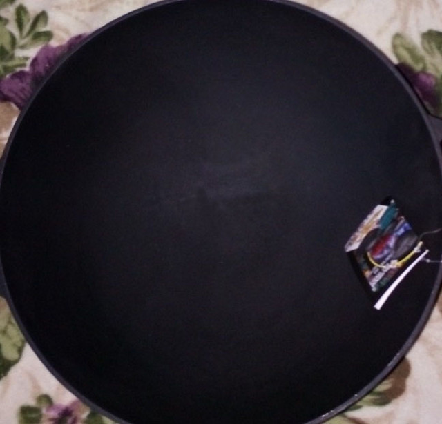Казан чавунний, (каструля WOK) в комплекті з чавунною кришкою ТМ Термо, триногою 340 мм і шумовкою 460 мм. Виробництва НВП Сітон, м. Дніпро. Обсяг - 8 літрів. Діаметр по кришці - 340 мм. Глибина (по центру) - 155 мм. Вага казана з кришкою - 8 кг. З зовнішньої сторони дна є рівна поверхня діаметром 10 см. Внутрішня поверхня дна ― сферичної форми.